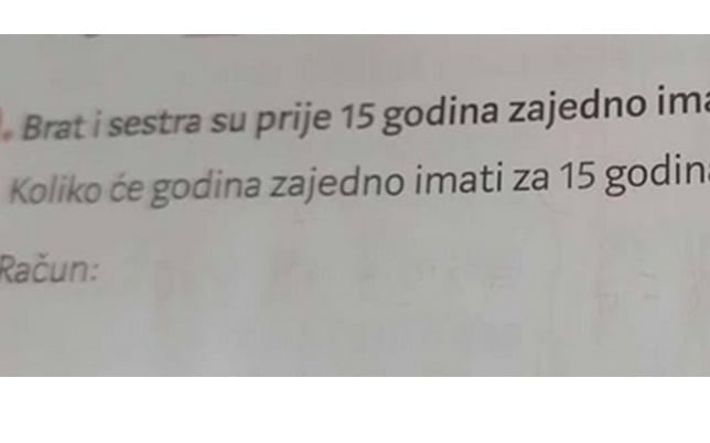 „Brat i sestra su pre 15 godina zajedno imali 25 godina. Koliko će godina zajedno imati za 15 godina?“, glasi zadatak koji je posvađao roditelje na Balkanu.