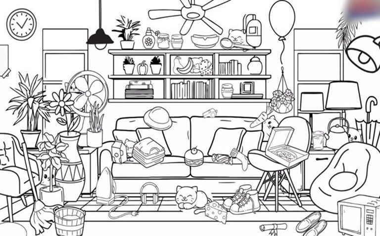 Optička iluzija prikazuje sobu u kojoj se nalazi mnogo stvari. Samo neko sa veoma visokim veštinama posmatranja može uočiti 8 skrivenih mačaka. A pravi genijalci će to učiniti u zadatom roku od 7 sekundi.