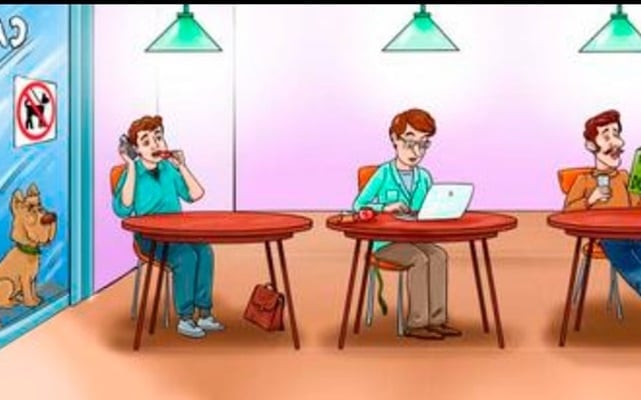 Na slici su tri osobe koje sede u prostoriji u kojoj nije dozvoljen boravak kućnim ljubimcima, što otežava zaokretanje pogleda ka spoljnim tragovima; autori zadatka daju samo sedam sekundi za pronalazak vlasnika, čime test dodatno postaje izazovniji i zabavniji.